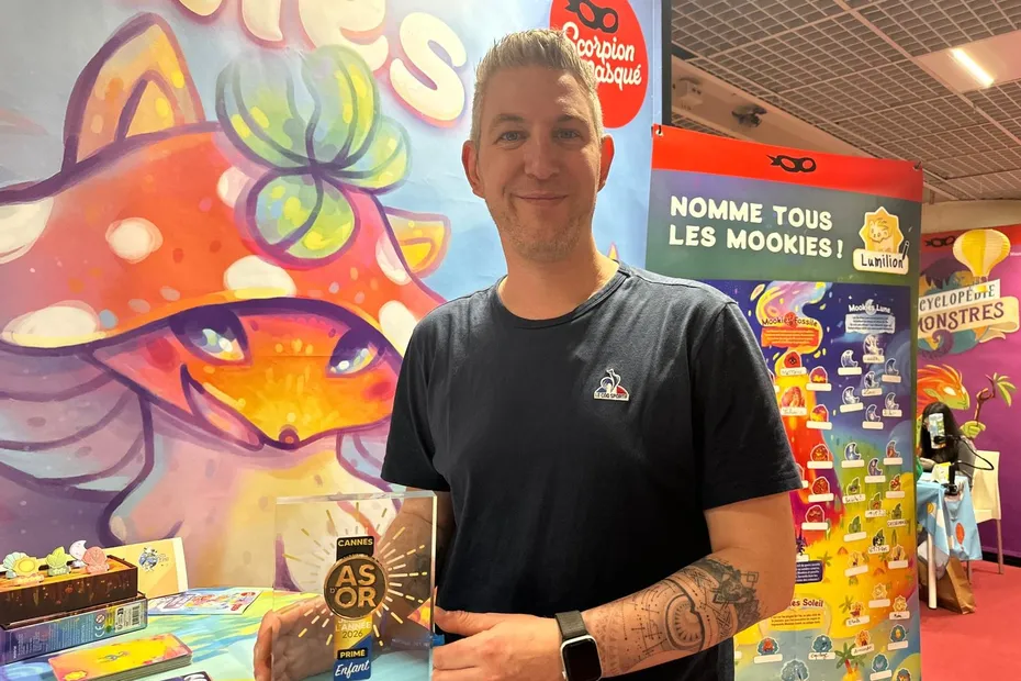 Trois questions à Florian Sirieix, gagnant de l'As d'Or 2026 dans la catégorie "jeu d'enfant" lors de la 39e édition du festival international des jeux à Cannes, du 27 février au 1er mars 2026. Le créateur du jeu "L'île des Mookies" nous partage ses premières impressions en tant que lauréat.
